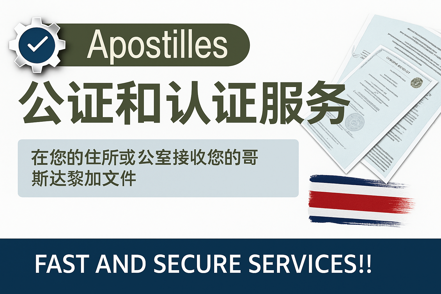 我们在哥斯达黎加提供完整的海牙认证与合法化服务,包括文件处理、认证以及国际寄送 —— 快速、准确,并完全符合外国主管机关的要求。